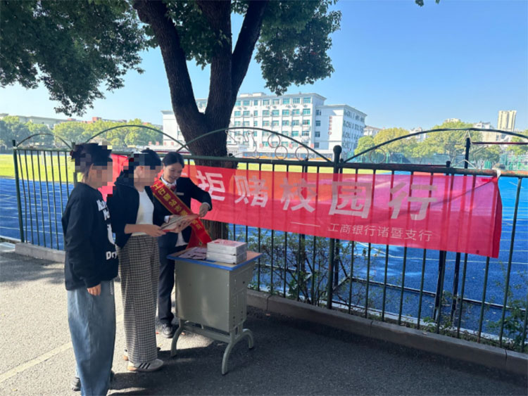 工行诸暨望云支行走进校园,开展反诈宣传活动。