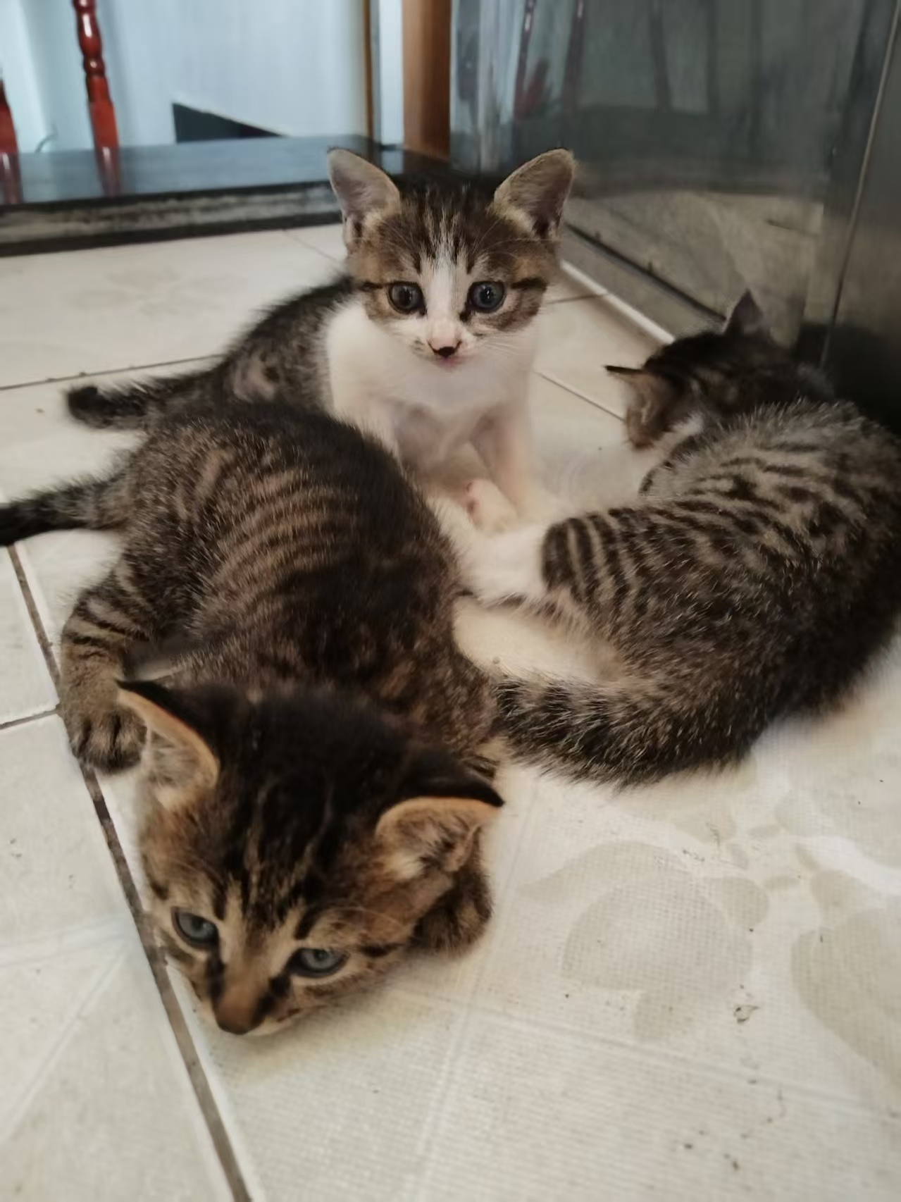 三只可爱的小猫咪,自家母猫生的,目前1个月大了,如需要领养的可加我微信联系,非诚勿扰!